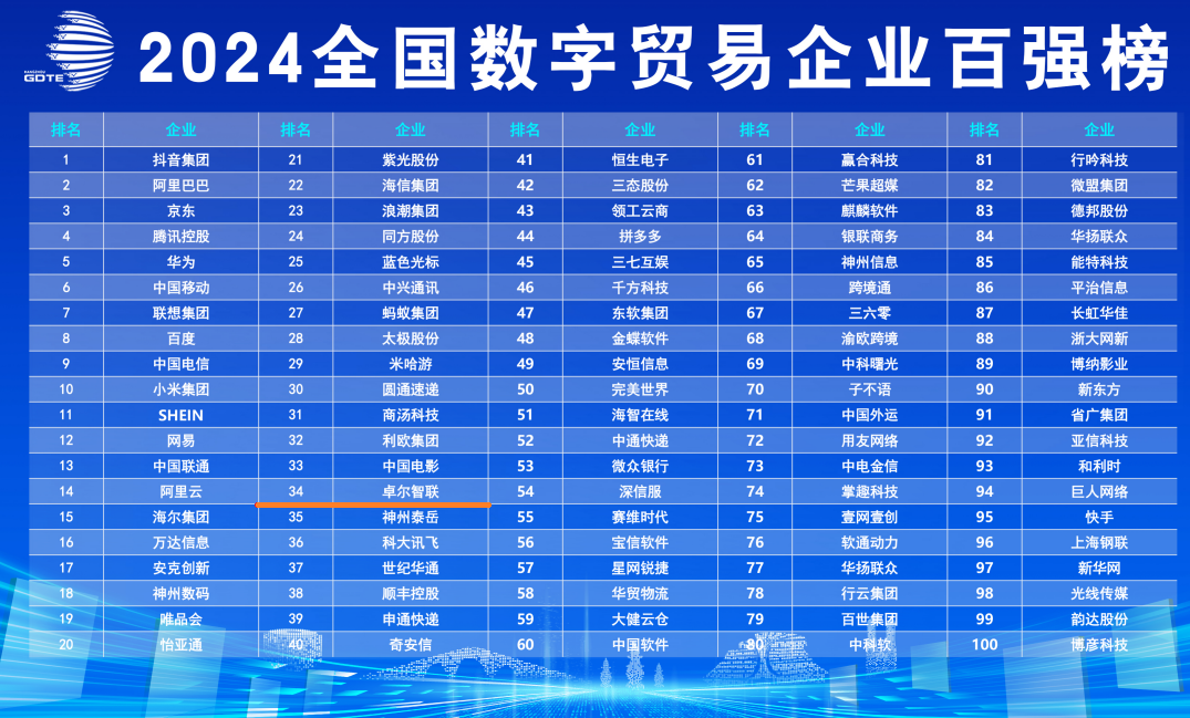 9月25日,,第三届全球数字贸易博览会在杭州开幕,,,赛迪顾问股份有限公司在会上发布了《2024中国数字贸易企业竞争力研究》及2024全国数字贸易企业百强榜,,,,尊龙时凯同阿里、、京东、、腾讯等知名企业一同入选榜单,,位列第34位。。。